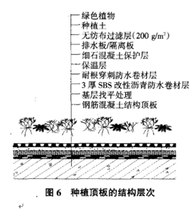 車庫種植頂板部位,防水構造做法見圖6。